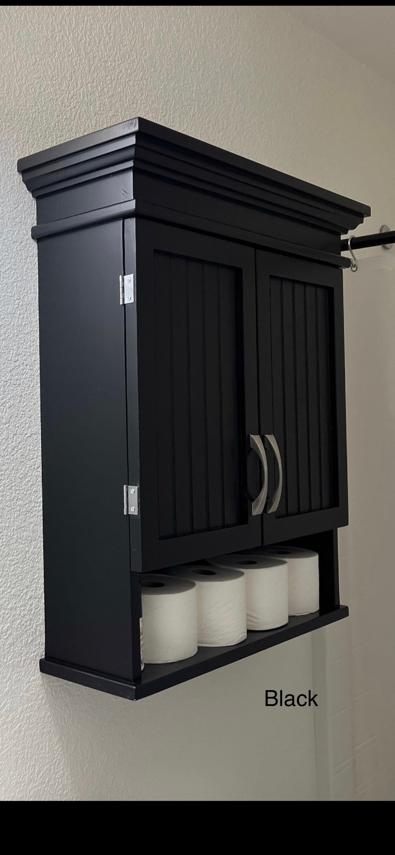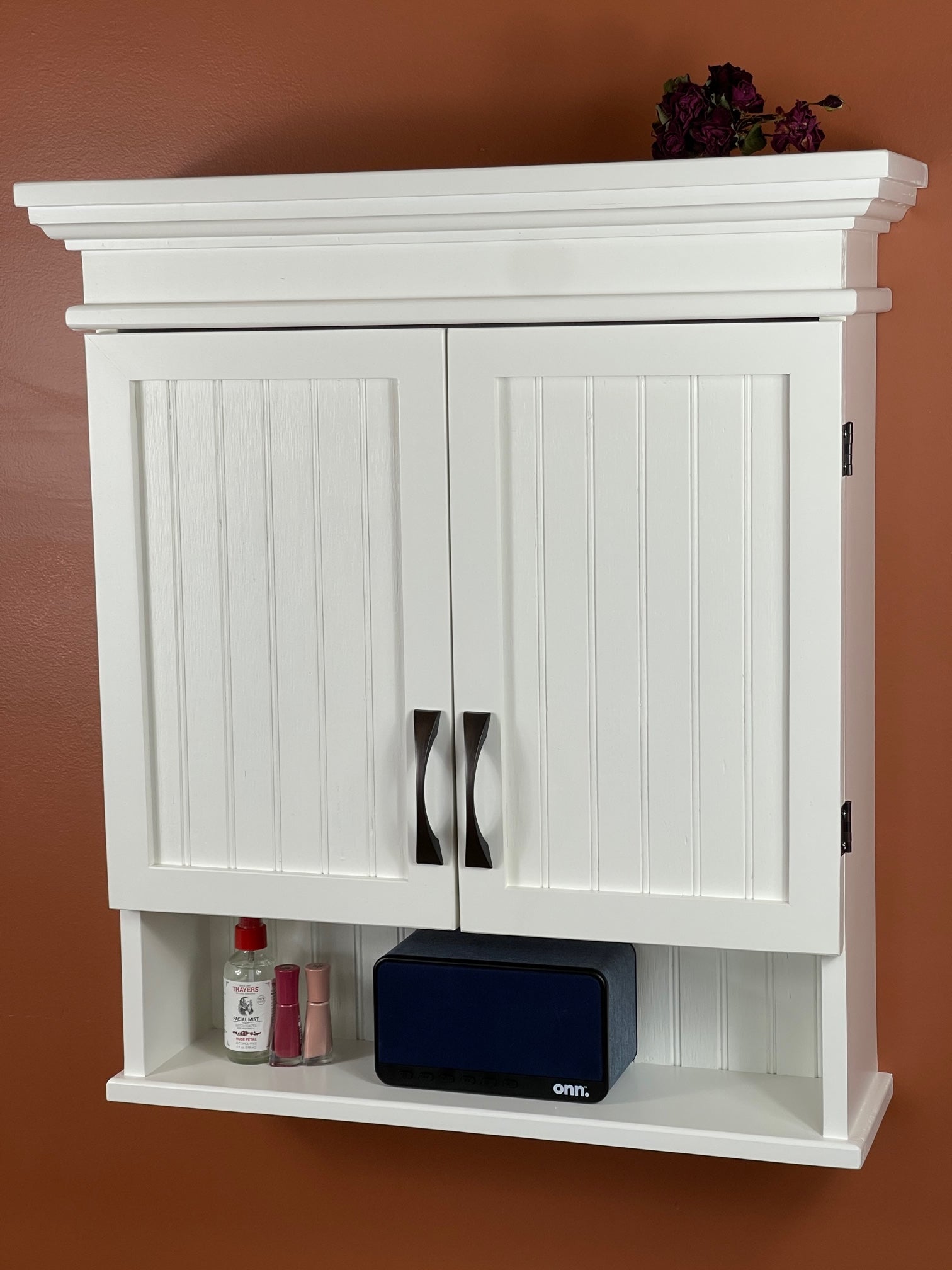 This is a beautifully finished wall hanging cabinet. It would make a great bathroom cabinet or accent piece.